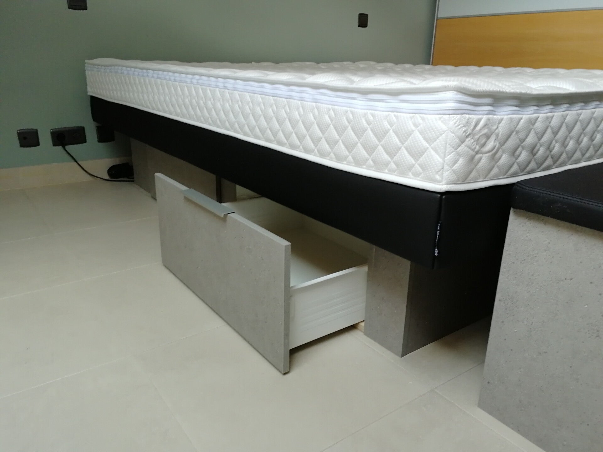 Wenst u extra opbergruimte in uw slaapkamer dan is een sokkel met ingewerkte schuiven een mogelijkheid.